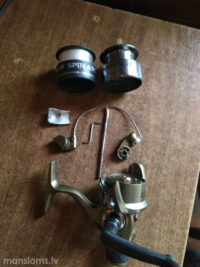 par simbolisku cenu atdošu vairākas pozīcijas spolēm. -Salmo " sniper spin 4RD" divas kasetes (metāla un plastmasa) spole taisāma, salauzts uztīšanas mehānisms (iekšas kā jaunas, bojātās daļas noņemtas) -Salmo kasetes, plastmasas, diamond 3935 un supreme ultra 130 -Cormoran "corcast super jet" metāla kasete. bojāts iekšējais mehānisms (vadīkles zobrats)(bojātas daļas izņemtas) -linewinder "res fs 733" plastmasas kasete, bojāts loks (nestrādā kā nākas), nav slēdzis atpakaļ gaitai.